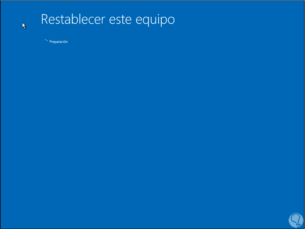 Una vez este proceso finalice veremos lo siguiente. Allí damos clic en el botón “Restablecer” para iniciar el proceso y de esta restablecer de fábrica Windows 10 sin el uso de una contraseña de acceso, esto tomará algún tiempo en base a la cantidad de archivos disponibles.