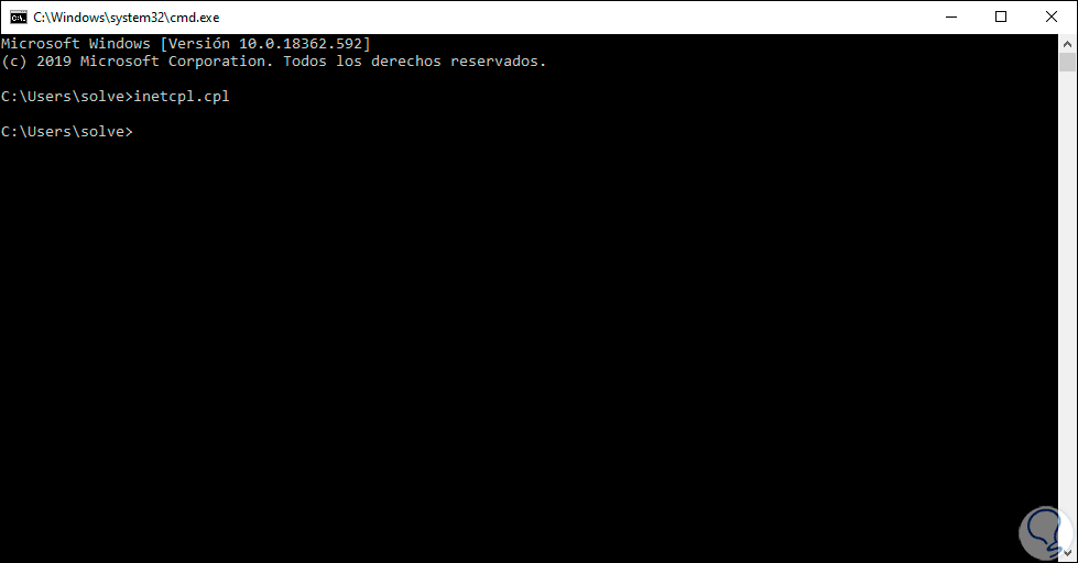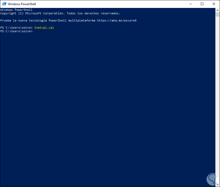 5. Abrir Opciones de Internet desde CMD o Windows PowerShell en Windows 10