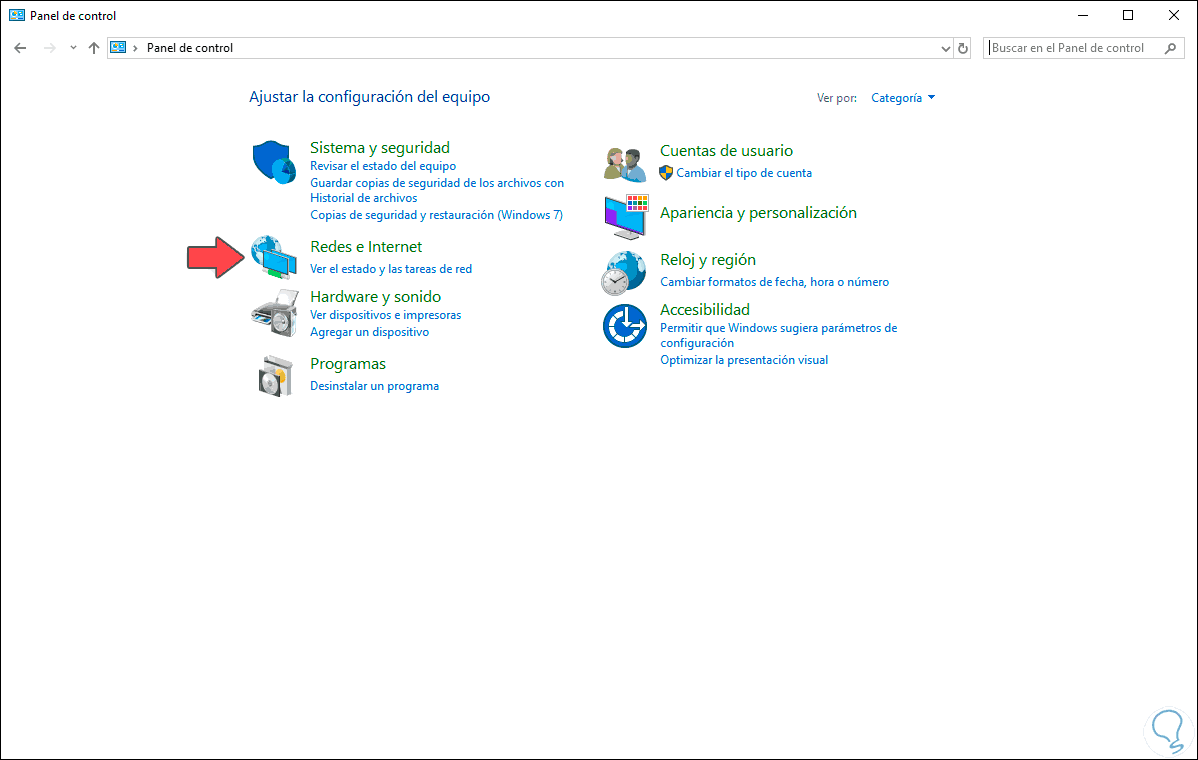 Para esto accedemos al Panel de control y veremos lo siguiente: