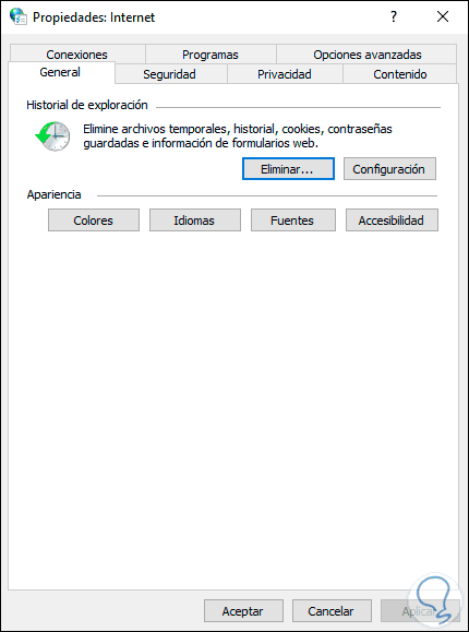 1. Abrir Opciones de Internet desde el navegador en Windows 10