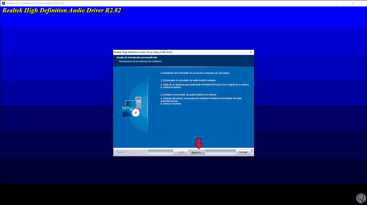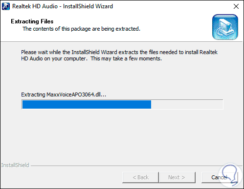 Damos clic en Siguiente y se iniciará el proceso de instalación del administrador de audio de Realtek en Windows 10: