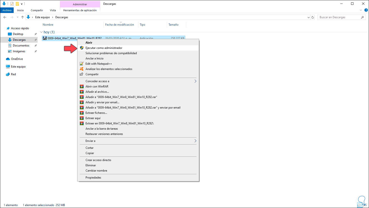 Ahora existe la posibilidad de reinstalar el controlador de audio de Realtek, esto permite que todos los procesos asociados sean actualizados y así se optimice su funcionamiento, para ello debemos descargar en primer lugar el Administrador de sonido desde el enlace que te hemos indicado anteriormente, una vez descargado procedemos a su ejecución y seguimos los pasos del asistente de instalación, Solvetic te recomienda realizar la instalación como administrador dando clic derecho en el ejecutable y seleccionando “Ejecutar como administrador”:
