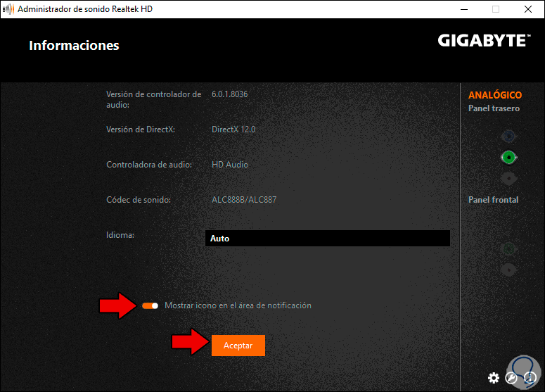 1. Abrir el Administrador de sonido Realtek HD según placa base