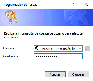Damos clic en Aceptar y se desplegará la siguiente ventana emergente donde ingresamos la contraseña de usuario: