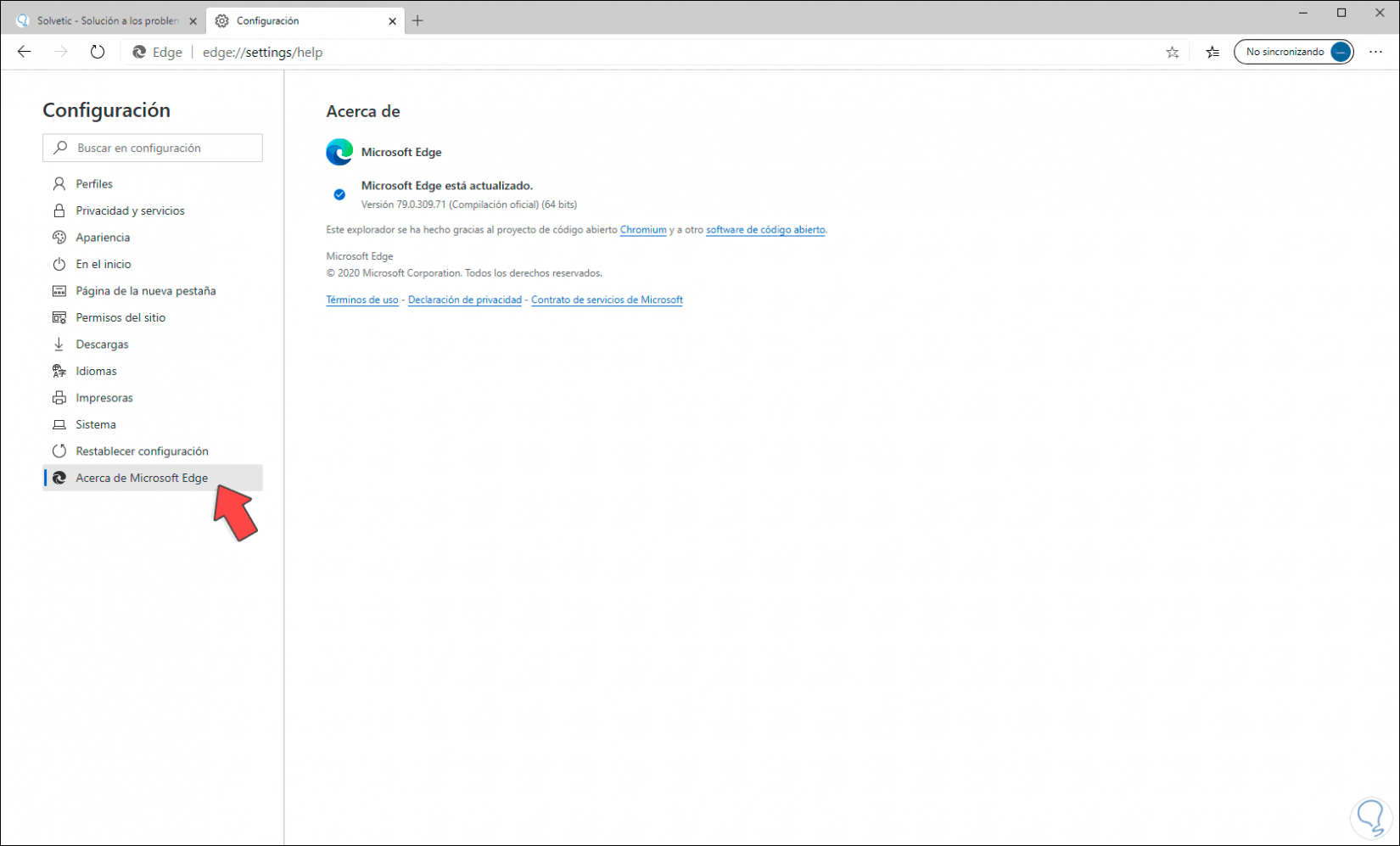 1. Actualizar Microsoft Edge Chromium desde Configuración