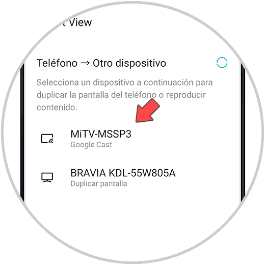 Veremos que aparece un listado de dispositivos al que conectarnos, en este caso elegimos la televisión de Xiaomi Mi TV 4S.