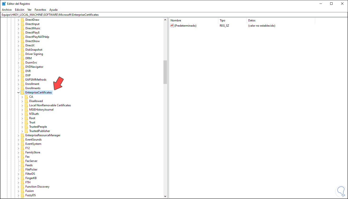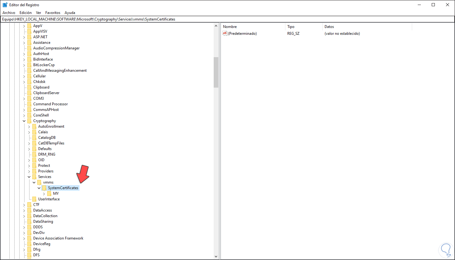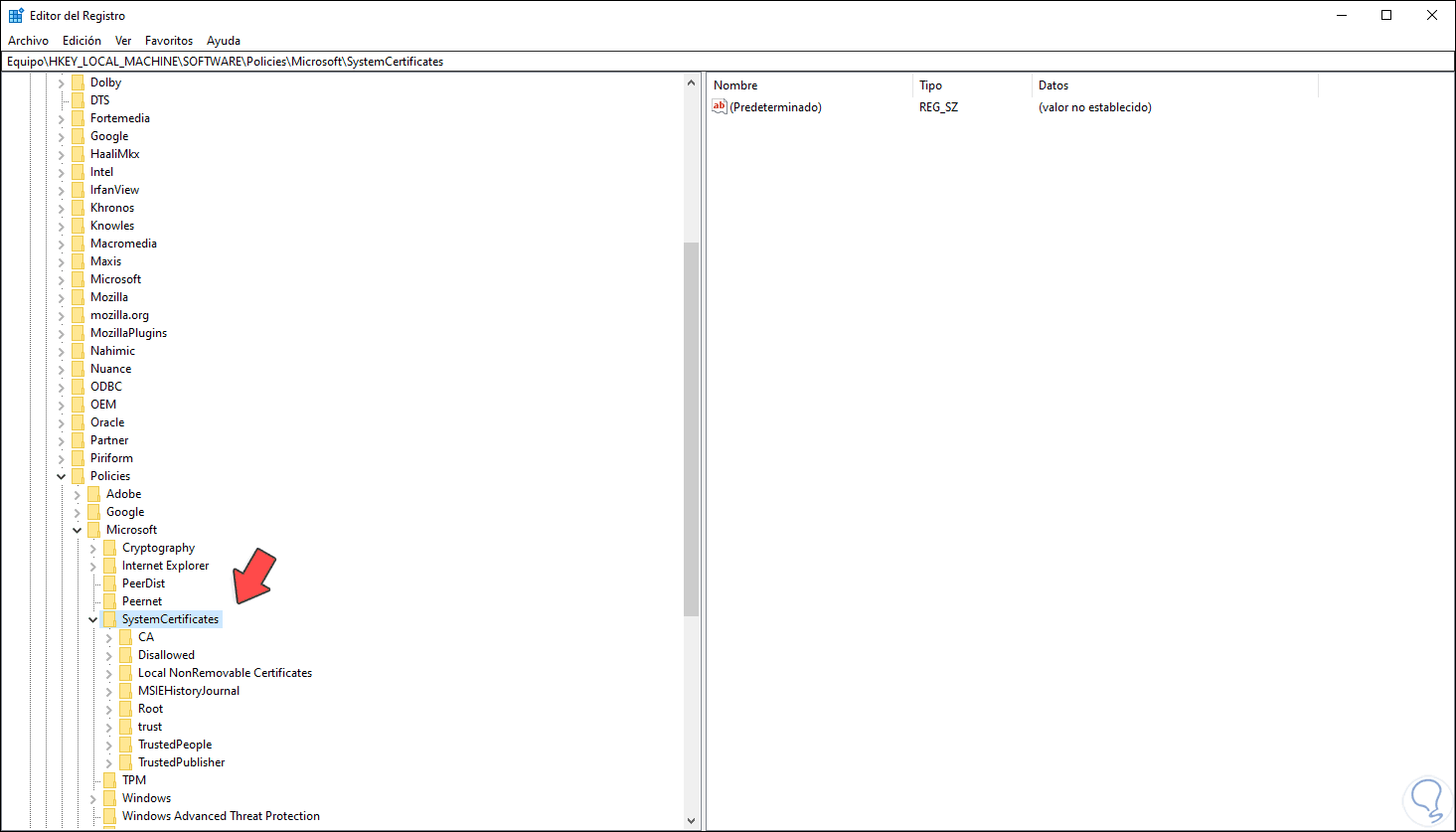 3. Ver los certificados digitales desde el Editor de Registro en Windows 10