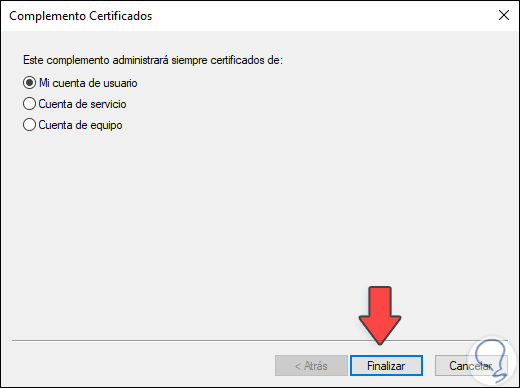- Cuenta de equipo: administra los certificados digitales de todo el entorno de Windows 10.