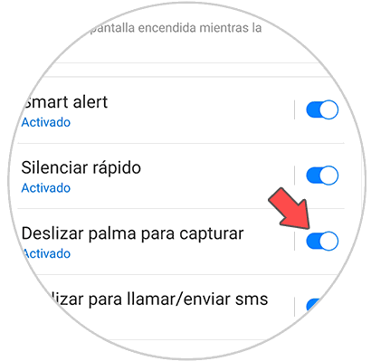 Ahora debes activar la pestaña que pone "Deslizar palma para capturar".