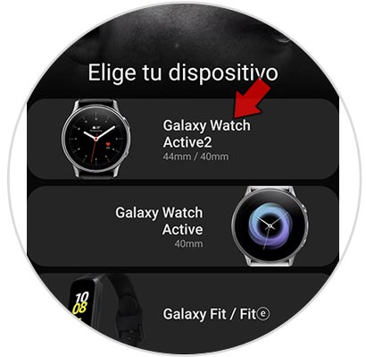 El siguiente paso será seleccionar el tu modelo. En este caso Samsung Galaxy Watch Active 2.