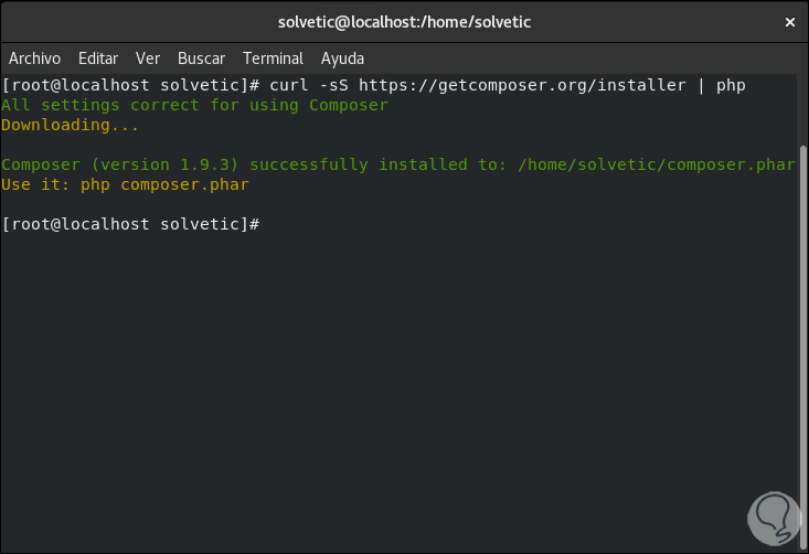 Una vez validemos que Apache está instalado, vamos a instalar Composer en CentOS 8 ejecutando lo siguiente: