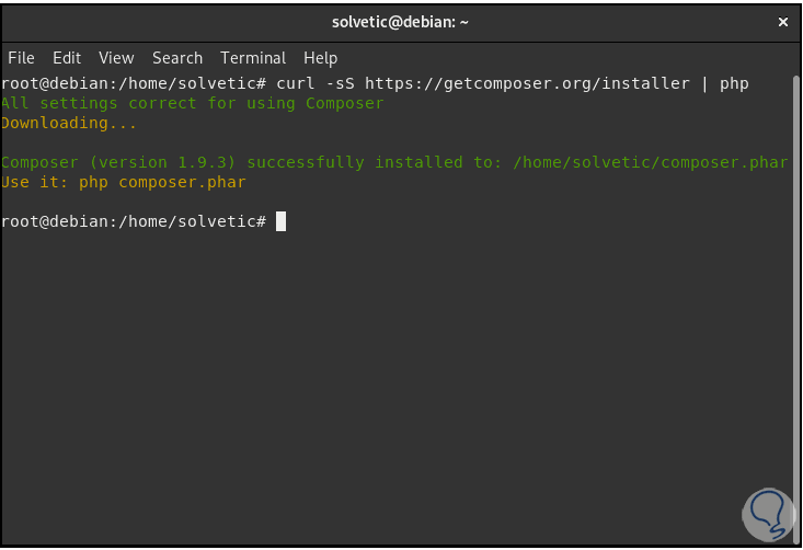 Procedemos a instalar Composer para instalar luego Yii ejecutando lo siguiente: