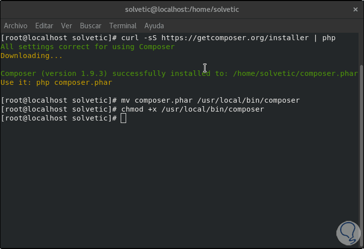 Ahora vamos a permitir que Composer esté disponible para todos los usuarios de Ubuntu ejecutando lo siguiente: