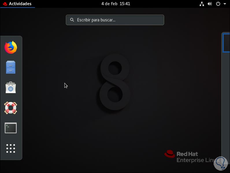Damos clic en “Empezar a usar Red Hat Enterprise Linux” para cerrar el asistente y empezar a conocer esta nueva versión de Red Hat: