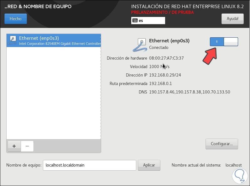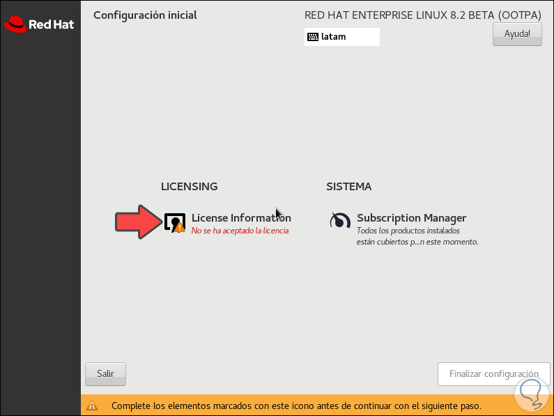 - Teclado: esta opción nos permite configurar el idioma de entrada de RHEL 8.2