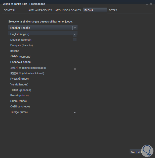 Damos clic en “Cerrar” y podemos ver que el proceso de actualización de idioma se aplica al juego: