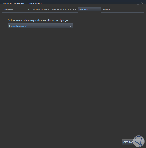 En la ventana que será desplegada vamos a la pestaña “Idioma” donde veremos el idioma actual del juego: