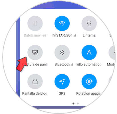 Lo primero que haremos será desplazar la parte superior de la pantalla y buscar el icono de recorte con unas tijeras. Con esta opción podrás realizar una captura en tu pantalla cuando pulses sobre este icono.