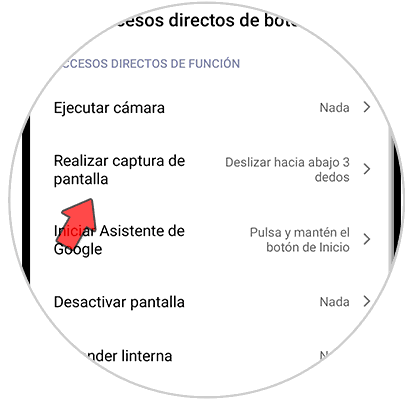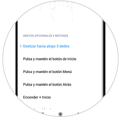 Aquí podremos elegir la captura de pantalla con los 3 dedos o bien otras opciones de las que nos ofrece.