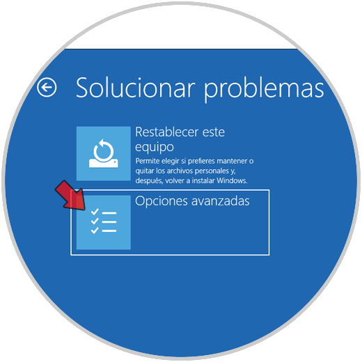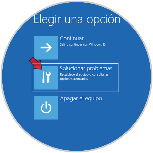 Esto reiniciará el sistema y veremos lo siguiente. Seleccionamos “Solucionar problemas”