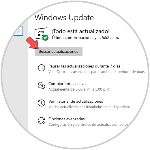 Allí damos clic sobre el botón “Buscar actualizaciones” con el fin de que se busquen y descarguen las actualizaciones disponibles.