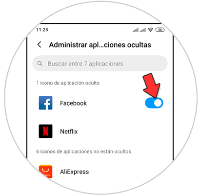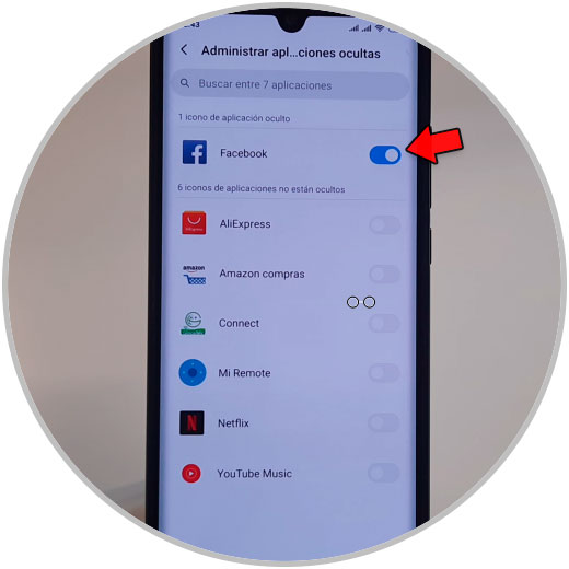 Aquí, si desactivas la pestaña de las aplicaciones ocultas los iconos de éstas volverán a aparecer en la pantalla de tu Mi Note 10. También desde aquí puedes ocultar más aplicaciones simplemente activando la pestaña en este punto.