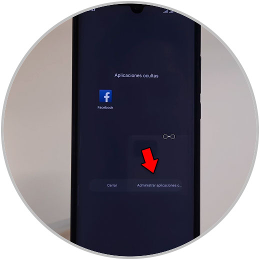 Aquí vas a ver los iconos de las Apps ocultas. Puedes entrar desde aquí o también puedes gestionarlas pulsando en “Administrar aplicaciones”.