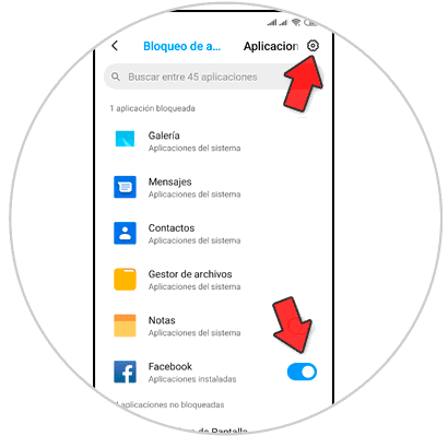 Una vez establecida, si deslizas la pestaña para estas Apps te pedirá el patrón que estableciste para bloquearlas. Una vez seleccionado esto pulsa en el icono del engranaje que vas a encontrar en la esquina superior derecha de la pantalla.