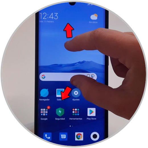 Lo primero será hacer en la pantalla de inicio del terminal el gesto de hacer zoom en una foto con los dedos pulgar e índice en forma de pinza.