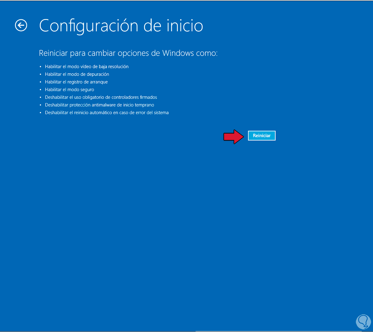 Damos clic sobre la opción “Configuración de inicio” y será listado lo siguiente: