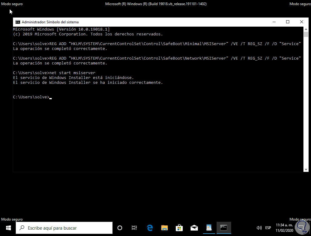 REG ADD "HKLM\SYSTEM\CurrentControlSet\Control\SafeBoot\Minimal\MSIServer" /VE /T REG_SZ /F /D "Service" REG ADD "HKLM\SYSTEM\CurrentControlSet\Control\SafeBoot\Network\MSIServer" /VE /T REG_SZ /F /D "Service" net start msiserver