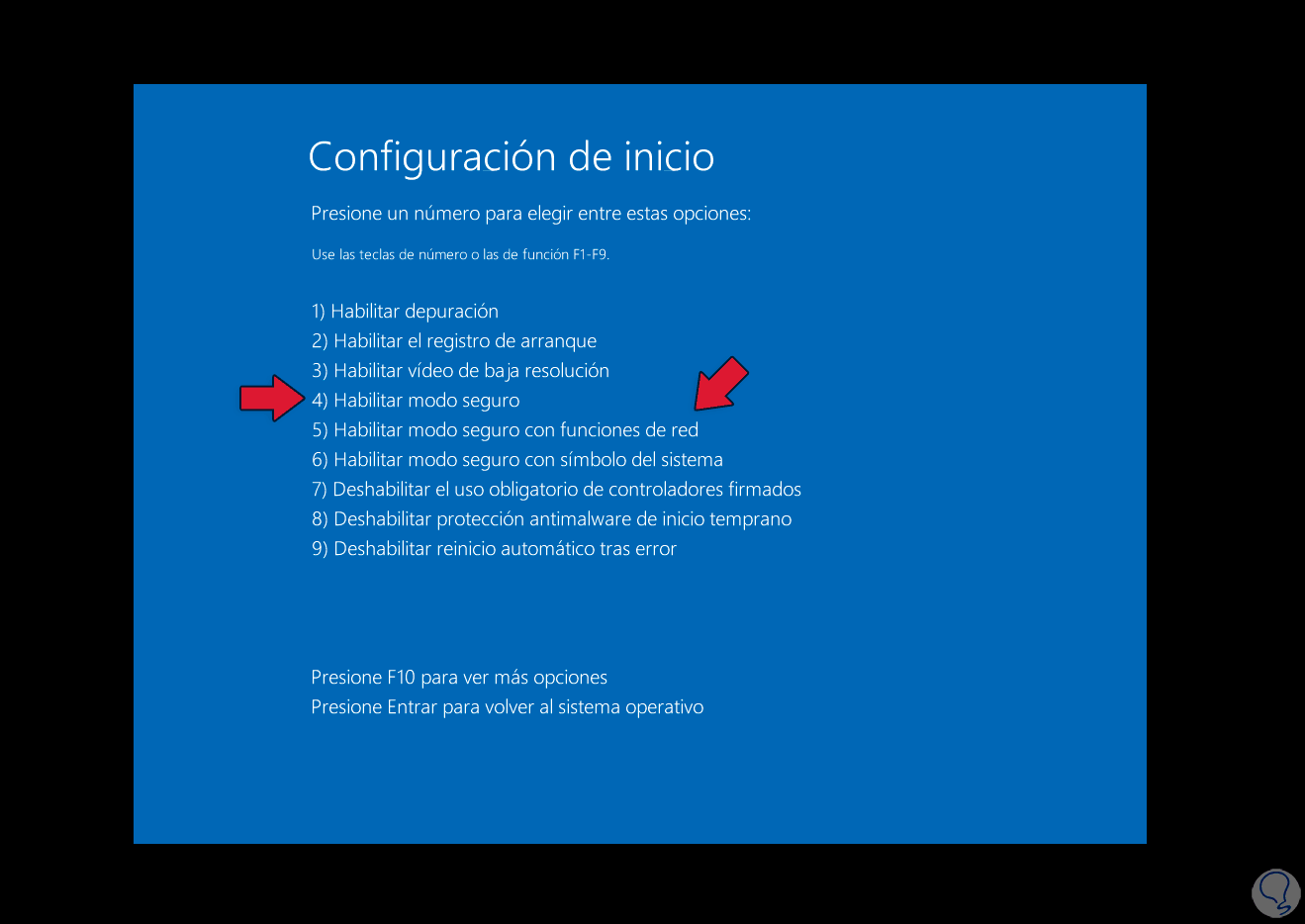 - Con la tecla F4 para ejecutar el modo seguro estándar