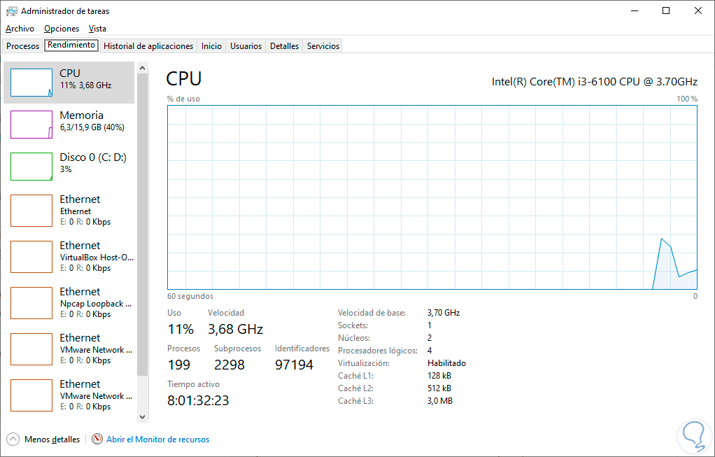Después de esto simplemente accedemos al Administrador de tareas para comprobar el uso de CPU: