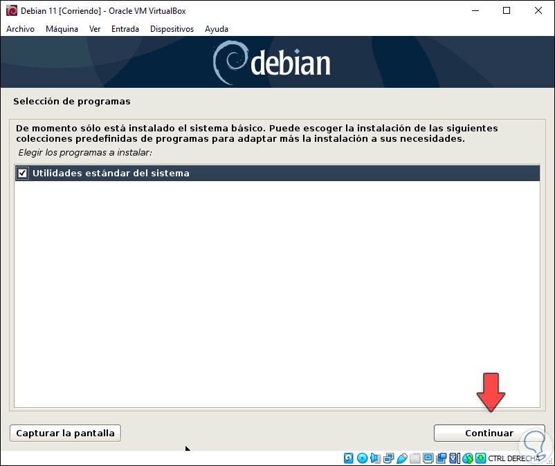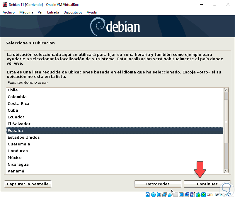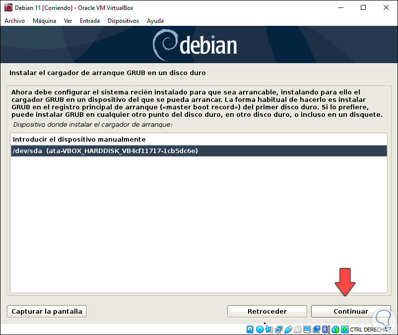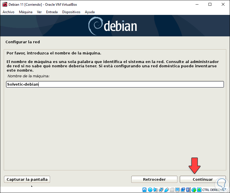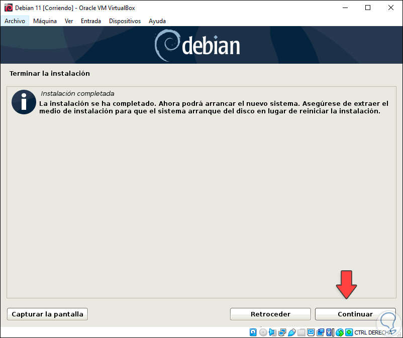 Damos clic en “Continuar” para iniciar el proceso de instalación de Debian 11: