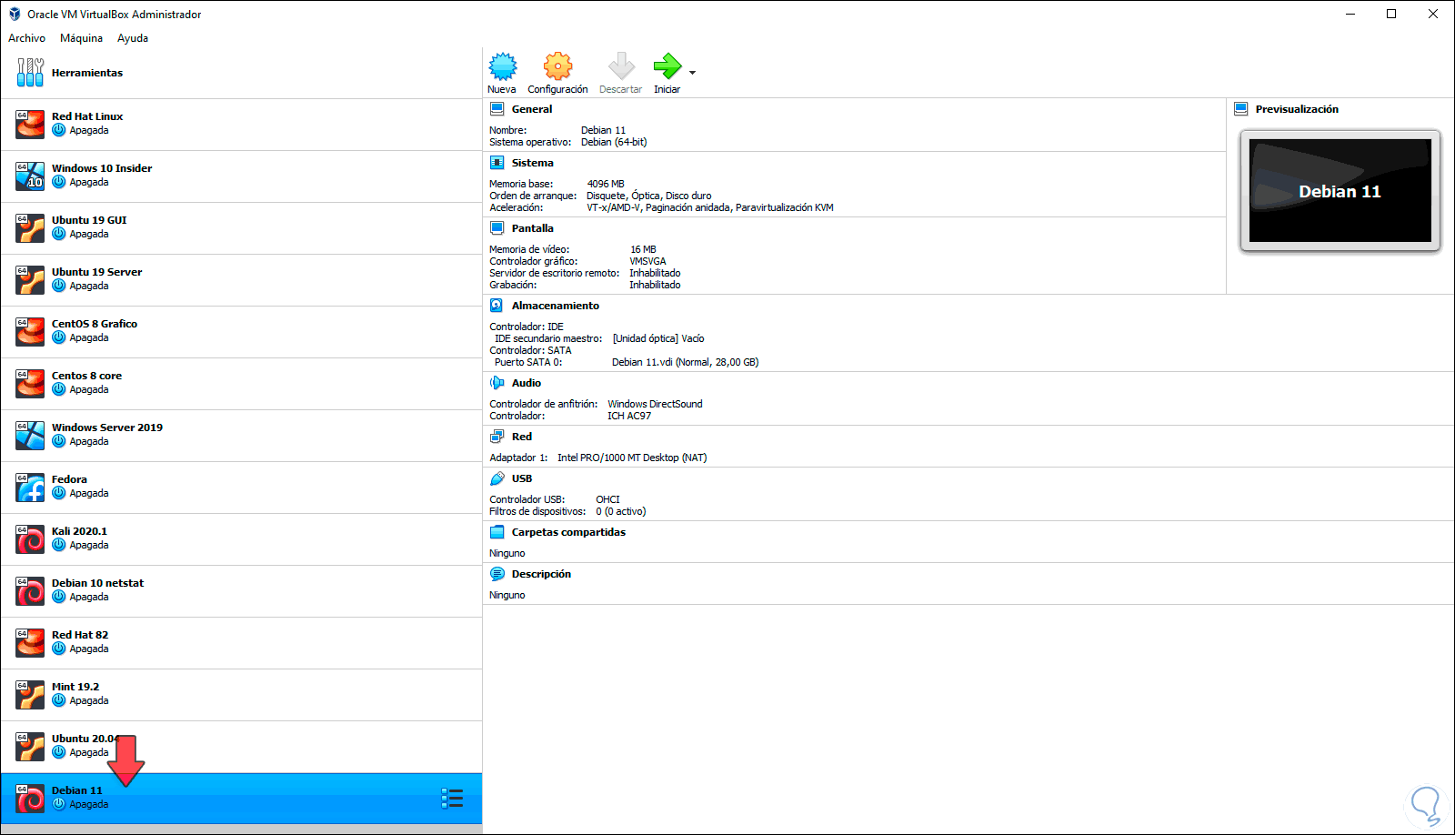 2. Cómo iniciar y configurar Debian 11 en VirtualBox