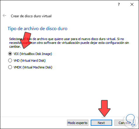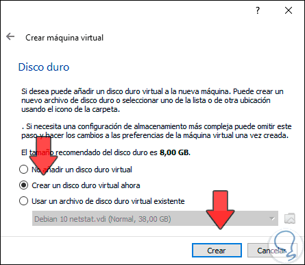 En la siguiente ventana seleccionamos la opción para crear el disco duro virtual: