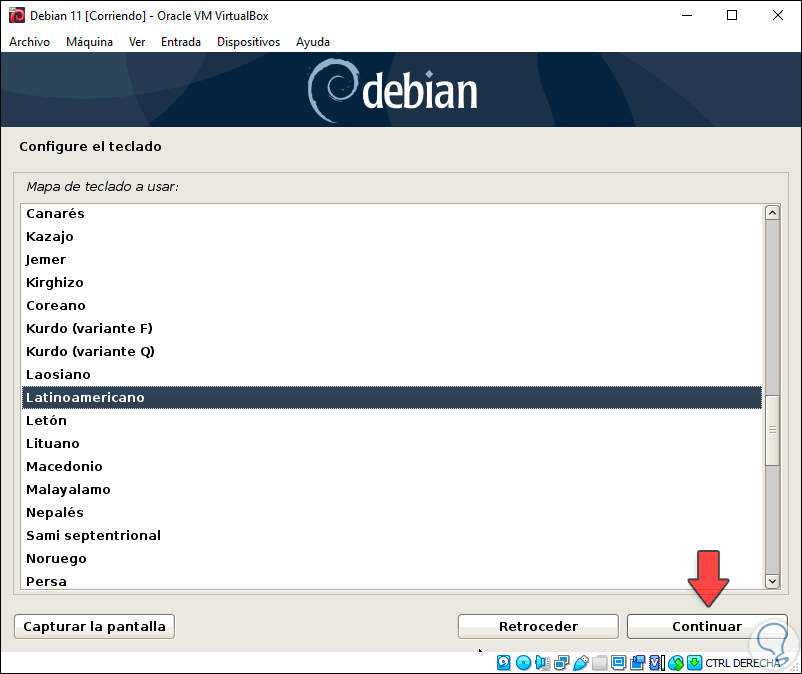 En la siguiente ventana seleccionamos la distribución del teclado: