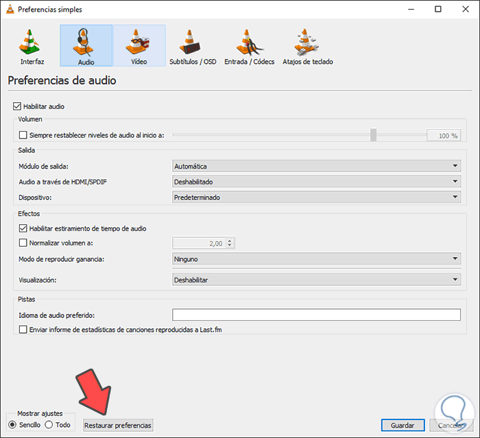 3. Cómo restablecer las preferencias de audio de VLC Media Player a los valores de fábrica