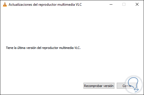 Como resultado podremos descargar una nueva versión o bien verificar que disponemos de la versión más reciente de VLC: