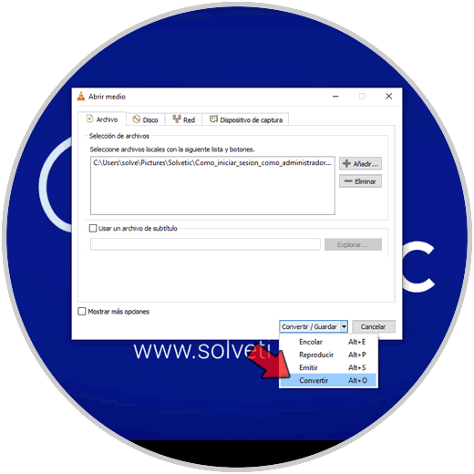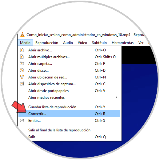 Este proceso lo podemos realizar con el propio VLC o bien con una aplicación diferente, si usamos VLC debemos ir al menú Medios y allí seleccionar Convertir: