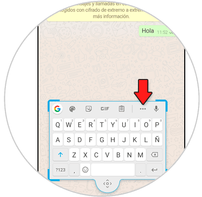 Se va a desplegar el teclado de WhatsApp, y en la parte superior del teclado vas a encontrar varias opciones. Pulsa en el icono de los 3 puntos horizontales.