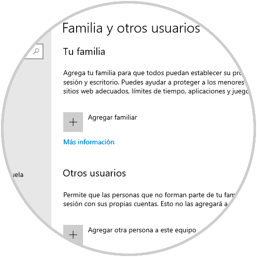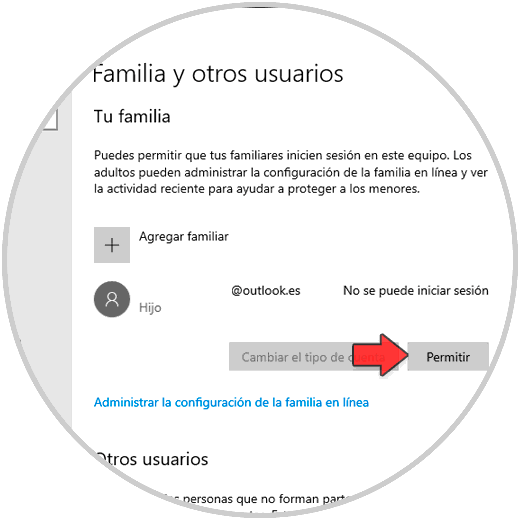 Allí debemos dar clic en el botón “Permitir” y si no tenemos una cuenta añadida daremos clic en “Agregar familiar” y seguimos los pasos del asistente, cuando demos clic allí será desplegada la siguiente ventana: