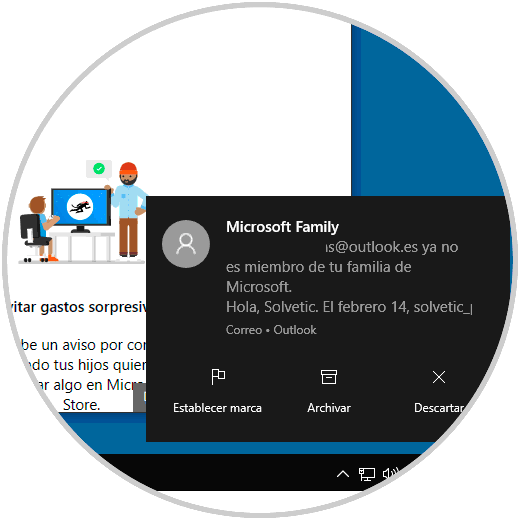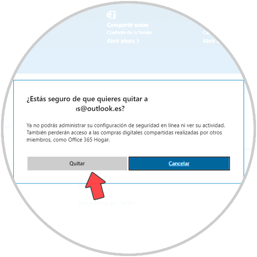 Confirmamos la eliminación de la cuenta dando clic en el botón “Quitar” y se desplegará un mensaje donde se indica que este usuario ya no forma parte de la cuenta familiar en Windows 10: