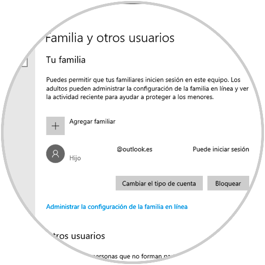Para confirmar que se ha eliminado por completo vamos de nuevo a “Inicio / Configuración / Cuentas” y validamos que la cuenta ya no está disponible en Familia y otras personas: