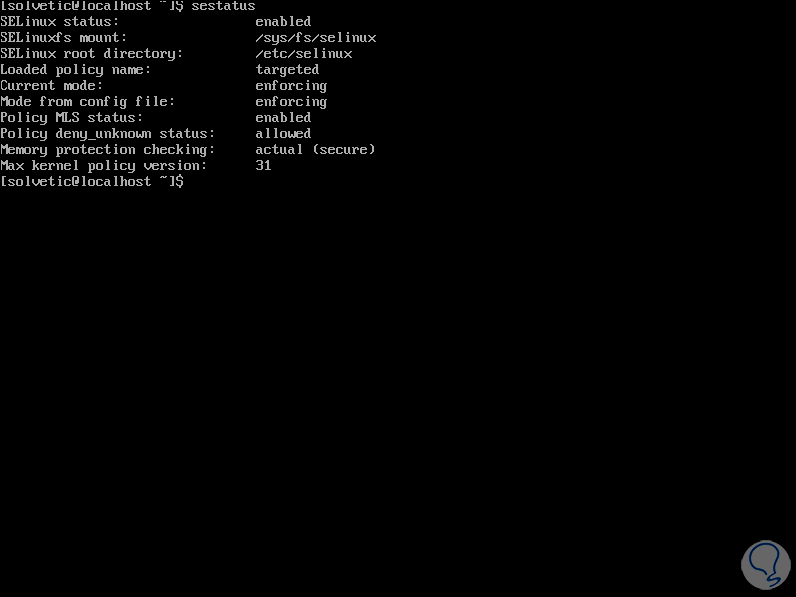 Como resultado veremos detalles completos de SELinux de la siguiente forma: