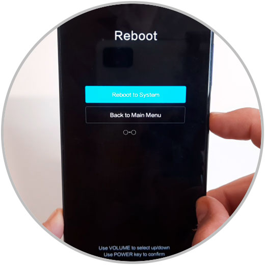 Del mismo modo en la nueva pantalla selecciona “Reboot to System” y el teléfono se reiniciará.
