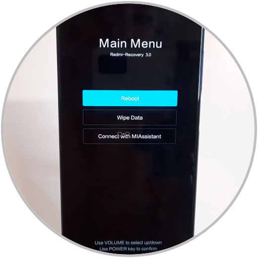 En el menú Reboot no funciona el tocar la pantalla del terminal, por lo que para moverte por las opciones del menú tienes que pulsar las teclas de volumen y para confirmar la tecla de Power. Selecciona “Reboot”.