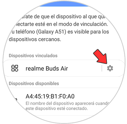 Ahora verás los cascos conectados con el teléfono. Verás que aparece una rueda dentada en el lateral. Tienes que desplegar sus opciones.