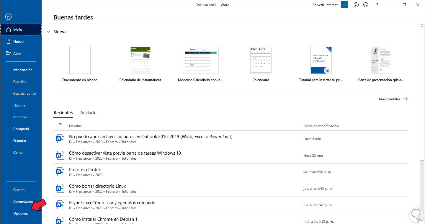 El primer paso a dar es abrir un nuevo documento de Microsoft Word e ir al menú Archivo / Opciones: