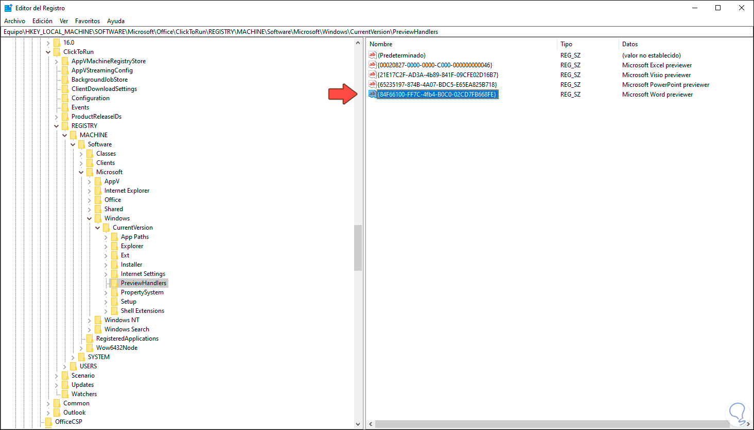 HKEY_LOCAL_MACHINE\ SOFTWARE\ Microsoft\ Office\ ClickToRun\ REGISTRY\ MACHINE\ Software\ Microsoft\ Windows\ CurrentVersion\ Preview Handlers
